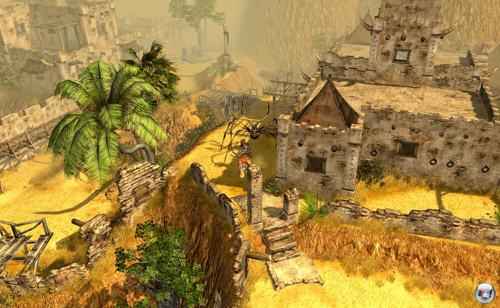 In einem Punkt schafft es Ascaron mit Sacred 2 sogar auf die Pole Position: Die Kulisse, die technisch nicht nur das Genre anführt, sondern allgemein auch anderen Rollenspielen gut zu Gesicht stünde. Die große und offene Welt Ancarias zeigt sich immer wieder als Hingucker mit all ihren Klimazonen, den Detail verliebten kleinen Animationen am Rande sowie ihren lebendigen Städten und Dörfern.