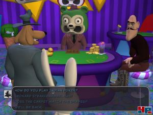 Vertiefte Kenntnisse der Vorgänger sind nicht erforderlich, denn auch wenn ihr Teil eins und zwei nicht gespielt habt, kommt ihr beim dritten Teil problemlos mit. Lediglich manch Seitenhieb geht euch dann verloren, etwa wenn das Duo über ihren letzten Auftritt im Fernsehstudio resümiert. Dieses Mal sind sie einem verschwundenen Maulwurf auf der Spur, was aber eher Nebensache ist. Vermutet wird der fast blinde Nager in einem bunten Vergnügungscenter, das von den Mafiosi kontrolliert wird, die geschmacksverirrte Bärenmasken tragen. Zeit, dass Sam und Max den Laden mal aufmischen…