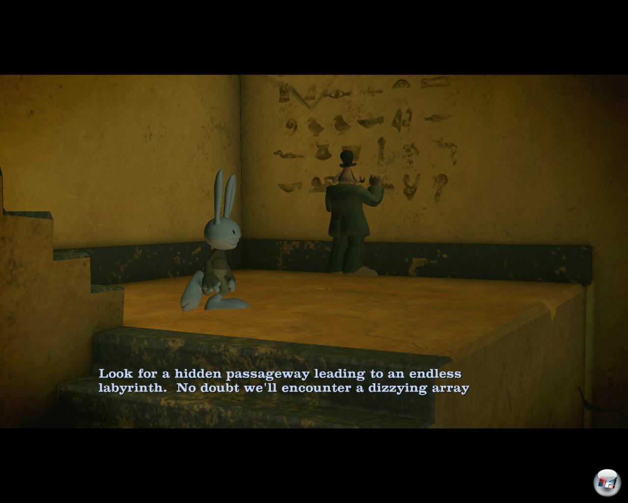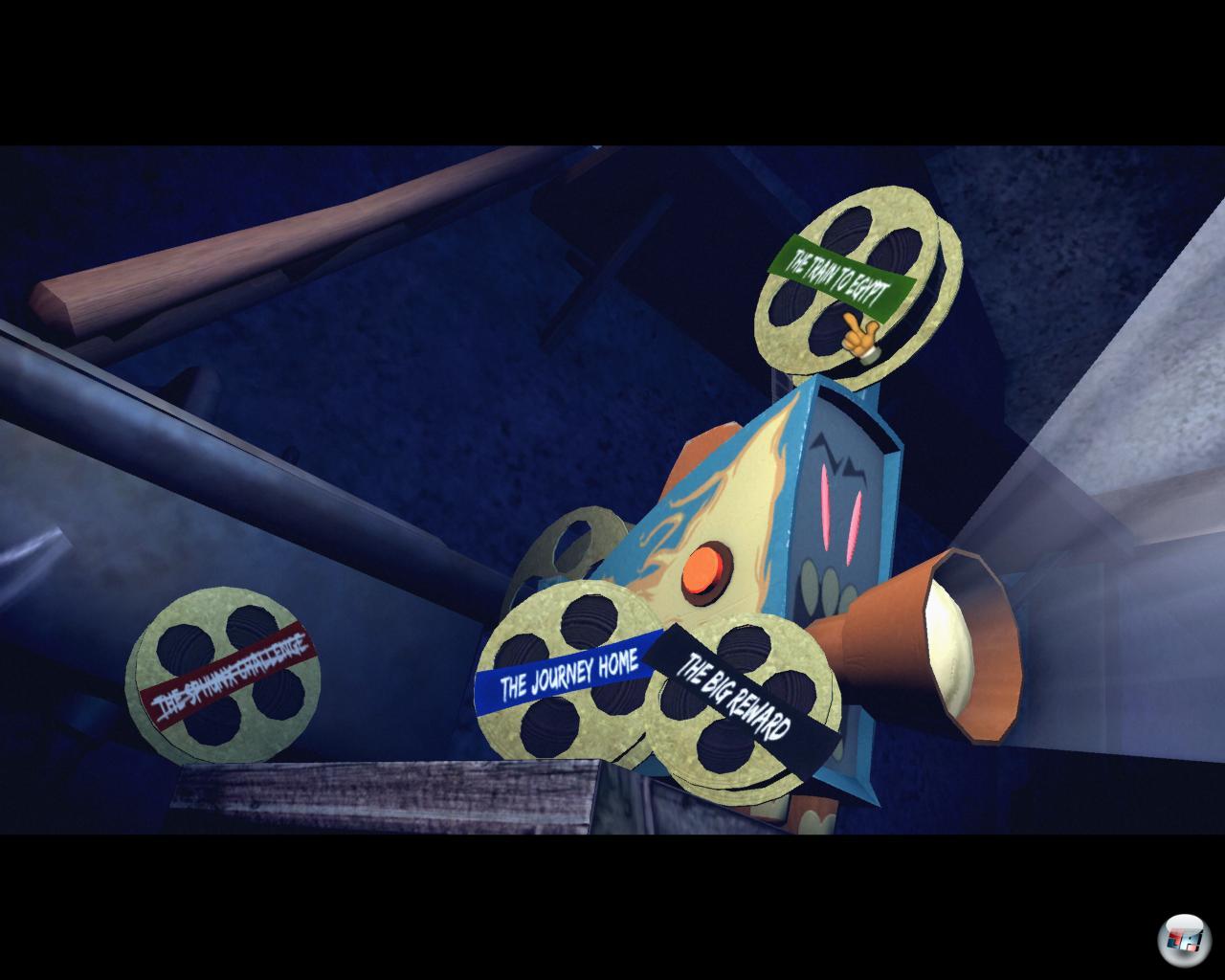 Aber so viel Auswahl gibt es eigentlich gar nicht, denn es sind nur vier Filmrollen, die man nach Gutdünken in einen altersschwachen Projektor einlegen kann. Das Beamen in die Filme ist nicht nur eine von Max‘ Spezialfähigkeiten, einfallsreich und stilvoll verpackt, es macht auch noch Spaß. Der Aufbau ist logischer, als es man vermuten würde: So findet man die Lösung für die altägyptischen Zeichen bei einem weiblichen Maulwurf, der sich auch aufs Verfluchen versteht. Jetzt flugs zurück ins Grab von Sammun Mak, wo man den Text lesen kann – die Pforte geht auf und die beiden sind gerettet! Danach geht’s zum Anfang, denn alles startet mit einem schrägen Wettbewerb im Theater.
