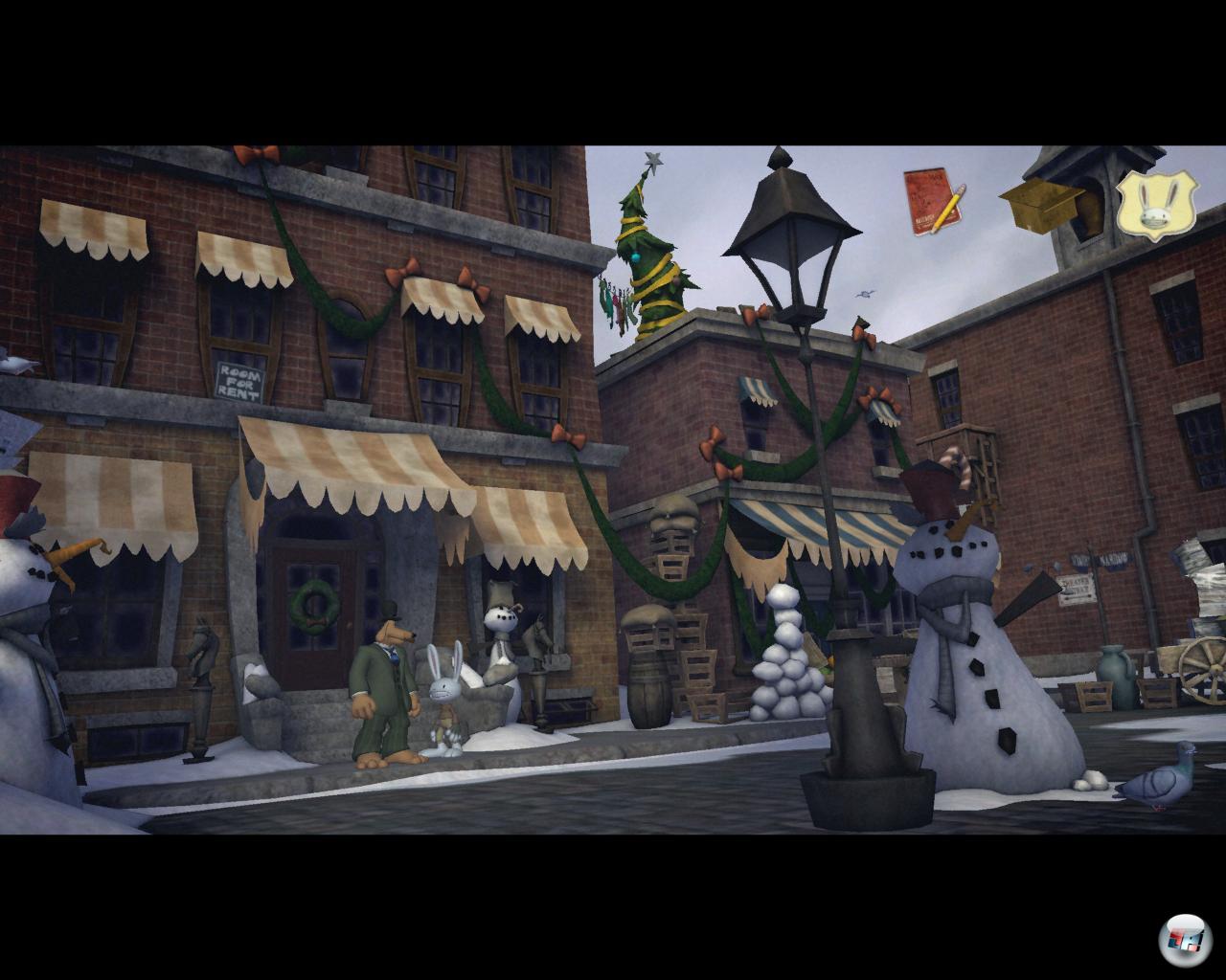 Die gewohnt flapsigen Bemerkungen des Heldenduos gibt’s dieses Mal natürlich auch wieder in verstärktem Maße, da das etwas umfangreichere Abenteuer einfach mehr Gelegenheit dazu bietet. Hier bekommen dann lichtscheue Typen aus Stuttgart ebenso ihr Fett ab wie die fluchenden Nager oder kriecherischen Elfen. Max dreht wieder seine berühmten Runden durch die Comic-Szenerie, während Sam sich von Schneemänner täuschen lässt. „They did it again!“, hört man, wenn man die liebevoll designten Eismänner anklickt. Warum er denkt, dass sie echt wären, wird nicht verraten. Jede Geschichte braucht ihre kleinen Geheimnisse am Rande, die nicht enthüllt werden.