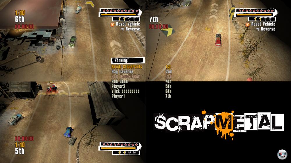 Ich möchte darum bitten, sich kurz zu erheben. Danke schön! Und jetzt dürfen sich alle wieder setzen – bis auf diejenigen, die Sonys Twisted Metal-Serie kennen. Nein, man muss sie nicht zwingend gespielt haben, nur kennen. Und von diesen bleiben bitte alle stehen, die Micro Machines kennen. Hmmm. Und jetzt setzen sich bitte alle, die nichts mit dem Namen Rock’n’Roll Racing anfangen und daher auch nicht den damaligen Entwickler nennen können – richtig: Es war Blizzard, seinerzeit noch unter dem Namen Silicon & Synapse! All diejenigen, die jetzt noch stehen, dürften wie ich mit Scrap Metal glücklich werden, vereint es doch die herausragenden Eigenschaften der drei genannten Titel.