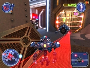 Die Akustik hingegen ist ein zweischneidiges Schwert: Am Soundtrack gibt es nichts auszusetzen, eine gesunde Mischung aus hektischem Techno-Gekloppe und ruhigen Ambient-Klänge sowie gute Effekte begleiten euch standesgemäß auf eurer Hatz. Die deutsche Sprachausgabe hingegen schwankt zwischen »gut« und »naja..« – es gibt einige gute Sprecher und einige, die sehr langweilig und emotionslos daherlabern. Gut, man hat es hier mit Robotern zu tun, aber selbst die sollten Gefühle zeigen können – besonders wenn man Sprüche wie »Hör auf bitte – ich kann Kämpfe nicht ausstehen!« während der Kämpfe locker 20 mal hintereinander zu hören bekommt. Gelegentliche Übersetzungs-Stilblüten wie »Ergib dich, oder ich lasse Gnade walten!« oder ein »Tiefer Schlund« genannter Informant (der im Original »Deep Throat« heißt) fallen nur am Rande unangenehm auf.