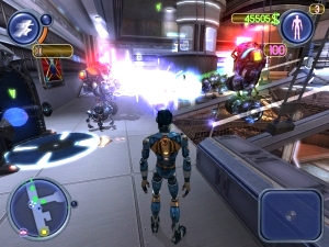 Jede der 15 Roboter-Arten hat spezielle Fähigkeiten: Als Bürgermeister kann man seine Zeitgenossen mittels bodenlos langweiliger Reden in den Sleep-Modus versetzen, als niedlicher Mini-Tacker schlüpft man auch durch die kleinste Ritze, als bombige Femme Fatale darf man seine Umgebung elektrisieren. Werdet ihr erwischt und abgeknallt, landet ihr, sofern ihr bei den Bischöfen kein Extraleben gekauft habt, im Gefängnis – aus dem ihr selbstverständlich ausbrechen könnt. Das hat keinen Einfluss auf die nur langsam in Fahrt kommende Story um die Morde und geheimnisvolle Informanten. Zwar ist sie nett erzählt, lässt sich selbst aber zu viele Pausen, in denen man einfach etwas anderes machen muss. Die Crux dabei ist, dass das dem Missionsdesign zuzuschreiben ist, welches euch nicht einen Auftrag präsentiert und danach die Story weiterspinnt – stattdessen sind die meisten Missionen mehrfach unterteilt oder gar miteinander verbunden! Um eine Information zu bekommen, die ihrerseits nur Teil eines übergeordneten Auftrags ist, müsst ihr erst vier bis fünf Untermissionen erledigen, die sich in die Länge ziehen. Erfreulicherweise wird man nach dem Abschluss eines solchen Auftragsblocks von gut in Szene gesetzten Rendervideos belohnt, in denen die Geschichte um einen wichtigen Faktor bereichert wird.