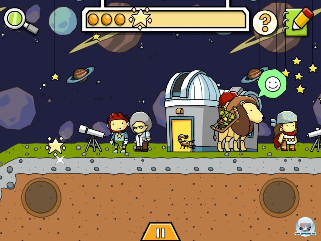 Das „Remix“ im Titel deutete es an: Das Scribblenauts für iOS ist kein neues Spiel, sondern bietet laut Warner eine Mischung aus den beliebtesten Levels der beiden DS-Teile. In der Praxis sind leider nur 40 bekannte Puzzles und zehn neue Exemplare enthalten. Zum Vergleich: In Teil 1 waren es üppige 220, in Teil 2 immerhin noch 120 Stück. Sehr ärgerlich ist, dass die lustigen Action-Levels komplett gestrichen wurden. In diesen Herausforderungen für Experimentierfreudige bekam man keine exakte Aufgabenstellung, sondern musste einfach nur den Starite erreichen. Wenn der funkelnde Stern hinter ein paar Höhlen über einen Berg hing, konnte man sich z.B. mit einem erschaffenen Bagger durch die Wände graben und danach auf dem Rücken eines Flugsaurier ans Ziel flattern. Manchmal patrouillierte auf dem Weg dorthin ein Gegner, welchen man nicht töten durfte. Also musste man kreativ werden, um ihn z.B. einzusperren oder mit einem leckeren Gericht abzulenken. Kurz gesagt: In den Action-Levels wurde die Fantasie noch stärker gefordert als in den gewöhnlichen Exemplaren.