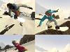 Was die Modi betrifft, gibt sich Road Trip spartanisch. Für Solisten steht der Story-Modus im Vordergrund, dessen nach und nach freigeschaltete Missionen mit ihren jeweils zwei zu erreichenden Zielen auf Dauer nur ein Manko haben: Gleichförmigkeit. Natürlich ist es schwer, in einem Snowboard-Spiel abseits vom üblichen „Schaffe des Rennen in dieser oder jener Zeit“, „Erreiche so-und-so-viele Grindpunkte“, „Erledige Tricks für mindestens X Punkte“ oder „Sammle X Symbole“ Aufgaben zu stellen, die nicht zu weit vom Schuss sind. Allerdings hätte es nicht geschadet, die trotz ihrer einfachen Natur unterhaltsamen Aufgaben um ein paar ungewöhnlichere zu erweitern, die noch mehr auf das integrierte „Team-Feature“ zugeschnitten sind. Dahinter verbirgt sich das Konzept eines mit euch fahrenden Kameramannes. Sein eingefangenes Bild von euch gibt mit leichten Verzerrungen nicht nur Aufschluss darüber, wie gut ihr eine Landung nach einem Sprung bewerkstelligt habt. Je nach ausgewähltem Partner werden bestimmte Fähigkeiten wie Sprungkraft, Geschwindigkeit etc. verstärkt, so dass ihr ab und an gut wählen müsst, um die Aufgabe zu erledigen.