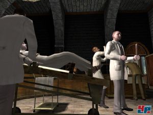 Trotz regelmäßig vorkommender Zwischensequenzen in Spielgrafik hätte man vieles noch besser inszenieren können, denn sogar das spielerisch durchwachsene Action-Adventure Call of Cthulhu: Dark Corners of the Earth <a class="DYNLINK" onmouseover="DynToolTipp_Show('Klicken für Gameinfos‚)“ onmouseout=“DynToolTipp_Hide(); “ href=“javascript:DynCont_Display(‚Gamefinder‘,’runmod.php?sid=%7BSID%7D&LAYOUT=dyncont_gf&spielid=3480′)“> mit seinen Schockszenen ist gruseliger. Vielleicht liegt es auch an der Bombast-Musik, die sich irgendwie seltsam zerstückelt anhört. Auch die Geräusche wie die Schreie der Anstaltsinsassen sind eher unfreiwillig komisch als wirklich beklemmend. Für Horror ist derartige Komik freilich der Todesstoß