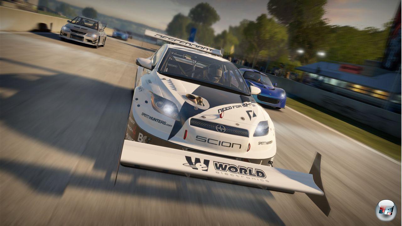 sich Letztere schnell wiederholen und der künstliche „Kumpel-Slang“ irgendwann nervt, man. Doch auch andere Fahrer wie Darren McNamara oder auch EAs Vice President und Hobby-Raser Patrick Soderlund begleiten mich durch die Karriere, die durch solche Elemente sehr viel lebendiger wirkt als die vergleichsweise trockenen Ansätze der Konkurrenz. Genau wie dort sind manche der Wettbewerbe auf Leistungs- und Fahrzeugklassen beschränkt. Die Entwickler nutzen ein ähnliches System wie Turn 10 bei Forza und ordnen die Fahrzeuge zunächst in eine Klasse von A bis D ein, um ihnen anschließend einen Leistungsindex in Form einer Zahl zu verpassen. Zudem unterscheidet man zwischen modernen und Retro-Fahrzeugen, so dass manche Events nur mit Boliden eines ältern Baujahrs in Angriff genommen werden können, was zusätzlich für Abwechslung sorgt. Mit 140 Autos wirkt die Fahrzeugliste im Vergleich zu Sammelbecken wie GT5 (mit mehr als 1000 Exemplaren) zwar etwas arm, doch dafür finden sich in der kleinen, aber feinen Auswahl überwiegend Modelle, die man auch tatsächlich gerne fahren will. Während einen die üblichen Anfänger-Boliden wie dem Mazda MX-5 oder Ford Focus zwar noch halbwegs kalt lassen, stellt sich spätestens hinter dem Steuer eines McLaren F1, Pagani Zonda R, dem Porsche 918 Spyder Konzept oder eines anderen der vielen Traumwagen die Freude am Fahren ein. Hinzu kommt das enorm motivierende Erfahrungssystem, bei dem man schon im Vorfeld die Belohnung angezeigt bekommt. Neben Geld-Boni und neuen Fahrzeugen winken vor allem weitere Aufkleber, Lack-Variationen und Folien.
