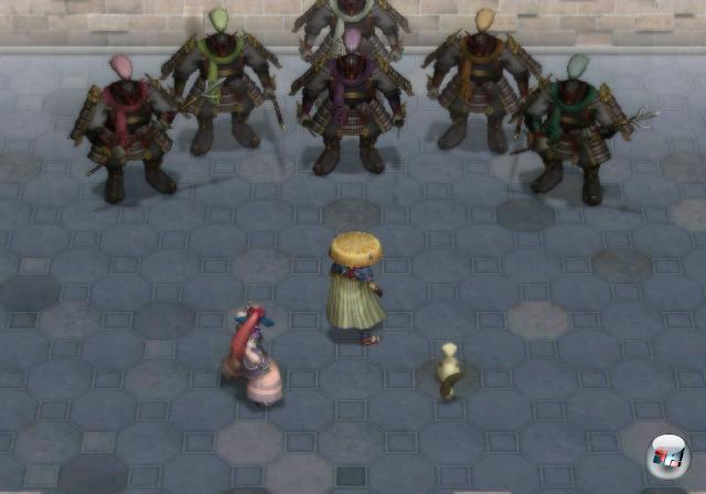 Alternativ kann man auch im so genannten Portal-Dungeon auf Beutejagd gehen, dem im Lauf des Spiels immer mehr Stockwerke hinzugefügt werden und der mit besonders seltenen Kleinoden aufwartet. Allerdings darf man diesen nur allein betreten und wird jedes Mal temporär auf Stufe eins zurückgesetzt, so dass man hier zumindest nach dem Verlust seiner Ausrüstung kein leichtes Leben hat. Immerhin gibt es abseits der Dungeons eine Depot-Funktion über die man Notreserven an Waffen, Gebrauchsgegenständen und Gold anlegen kann, die auch im Todesfall nicht verlustig gehen. Andererseits ist es aber trotz lauernder Diebe und Todesrisiko auch keine schlechte Idee mit prall gefüllter Geldbörse in den Kampf zu ziehen, da man in den Verliesen gelegentlich auf fahrende Händler trifft, die besonders interessante Waren feil bieten. Zwar kann man die Händler auch versuchen zu prellen, aber die Gegner die man dadurch auf den Plan ruft, sind kein Zuckerschlecken…