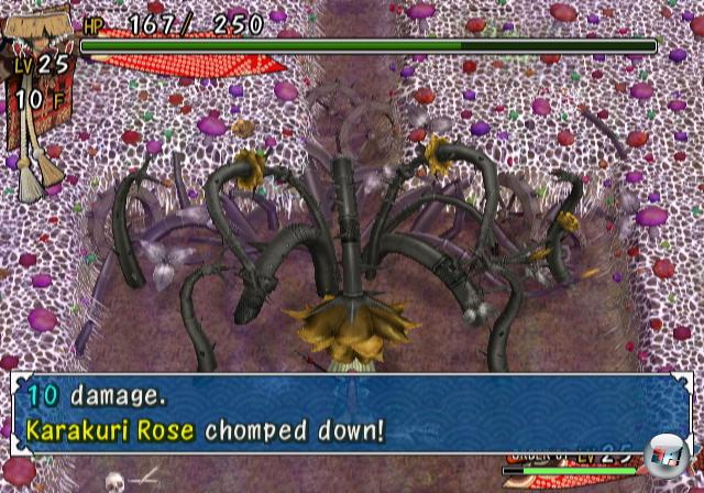 Für Abwechslung in den leider recht trist und altbacken wirkenden Dungeons sorgen neben Kämpfen, Schätzen und Fallen auch spezielle Bereiche, in denen bestimmte Aktionen tabu sind sowie generelle Handicaps wie festgelegte Charakterstufen und Partygrößen sowie Gold- und Itemverbote fürs Marschgepäck. Weniger erfreulich ist hingegen das Fehlen von Breitbild- und Progressive Scan-Unterstützung. Hilfreich wäre auch eine Anzeige der einem im nächsten Dungeon bevorstehenden Stockwerke gewesen, um das Inventar effektiver schnüren zu können und zu wissen, welches die letzte Etage ist, in der man seine Töpfe für den womöglich anstehenden Bosskampf plündern sollte, der einem stets ohne jede Vorwarnung vorgesetzt wird. Für Neulinge wäre vielleicht auch noch eine nicht nur an entsprechende Schriftrollen gebundene und auch während eines aussichtslosen Bosskampfs mögliche Rückkehrfunktion wünschenswert gewesen. Aber so leicht wollten einem die Entwickler den Einstieg in die Serie wohl doch nicht machen.