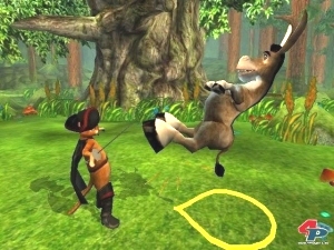 | Der gestiefelte Kater ist anfangs noch euer Gegner, später schwingt er seinen Degen auf eurer Seite. |