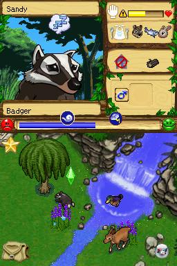 Die DS-Fassung ähnelt dem großen Vorbild inhaltlich. Die leicht abgeänderte Touchscreen-Steuerung funktioniert im Prinzip ordentlich, wirkt dank einem Wust an Symbolen, Pflanzen und Tieren auf kleinstem Raum aber recht überladen. Es ist mir oft passiert, dass ich ein neues Tier mit einer ungewollten Streichelattacke vergrault habe. Die karge 2D-Kulisse und die einfach animierten Tierchen versprühen leider nicht den gleichen Charme wie ihre Artgenossen auf dem großen Bildschirm. Außerdem ging mir das ununterbrochene Piepsgeräusch der Zufriedenheits-Smilies schon nach kurzer Zeit gehörig auf die Nerven.