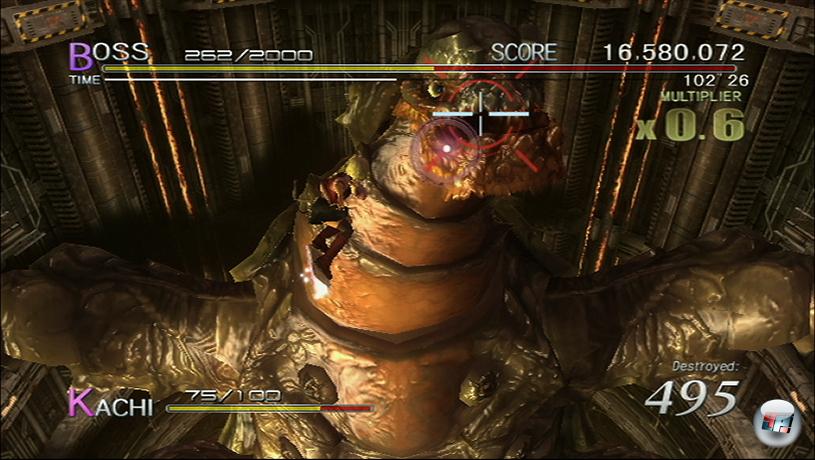 Letztere fallen je nach gewähltem Charakter unterschiedlich aus: Während Isas Spezialschuss bei Kontakt detoniert und auch in der Nähe des Ziels befindlichen Gegnern und Objekten Schaden zufügt, kann Kachi während des Aufladens bis zu acht unterschiedliche Ziele anvisieren und ihnen anschließend eine Salve zielsuchender Raketen auf den Hals hetzen. Wer will, kann natürlich auch den gesamten Raketenhagel auf ein einziges Ziel konzentrieren. Darüber hinaus können beide auch Ziele für normale Schüsse dauerhaft ins Visier nehmen, wobei Isa jeden Gegner manuell anvisieren und dabei eine Verringerung seiner Durchschlagskraft hinnehmen muss, während Kachis Fadenkreuz automatisch das nächstgelegene Ziel fixiert und mit voller Kraft attackiert. Dadurch ergeben sich zwei trotz gleicher Grundsteuerung doch sehr unterschiedliche Spielweisen, die sich nicht nur an persönliche Vorlieben, sondern auch Könnensstufen oder Steuerungsarten richten.