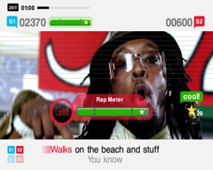 Das Prinzip von SingStar ist ebenso einfach wie genial: Das Programm wertet euren Gesang hinsichtlich Tonhöhe und Rhythmus aus und vergleicht diese Werte ständig mit den Originaldaten der Lieder. Bleibt ihr nahe am Vorbild, gibt’s einen entsprechenden Punkte-Reigen; verhaut ihr die Töne, müsst ihr mit einer schlechten Endwertung leben. Ihr könnt zwar allein vor euch her trällern, aber das wird mangels Karrieremodus (wie im ersten Teil) schneller langweilig als mit einer Bürste vor dem Spiegel zu stehen. Mit jedem Mitspieler gewinnt das Game an Unterhaltungswert, maximal acht künftige DSDS-Finalisten dürfen mitmachen. Neben einfachen Punkte-Modi gibt es auch Duette und Teamspiele. Labertaschen erfreuen sich am brandneuen Rap-Modus, der mehr als alles andere Wert auf korrektes Timing und den Rhythmus legt – natürlich nur bei Liedern, die einen Rap-Part enthalten. Ebenfalls neu ist die »Medley«-Variante: Hier singt ihr drei Refrains verschiedener Songs, die direkt hintereinander gelegt werden – leider nicht völlig flüssig, so dass es immer eine dem Liedfluss nicht eben dienliche Pause gibt.
