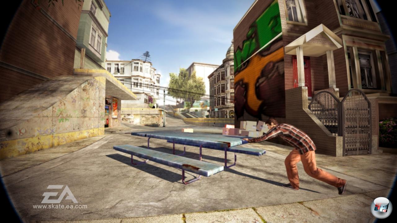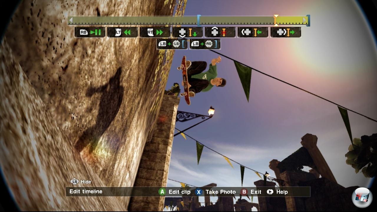 San Vanelano, die fiktive Großstadt, in der auch schon der Vorgänger spielte, ist im Großen und Ganzen neu – Kenner des Vorgängers werden allerdings viele vertraute Spots wiedererkennen, die dezent überarbeitet (lies: versifft) eine Rückkehr feiern – wie der Megapark oder der Classic Pool. In der Karriere gibt es erstaunlich viel Freiheit bei der Vorgehensweise: Man kann sich sklavisch an die nach und nach immer öfter aufpoppenden Missionen halten oder frei herumcruisen und nach »ownbaren« Spots oder sonstwie coolen Locations suchen, an denen ihr Mördertricks aus dem Ärmel zaubert. Falls einer davon so gut ist, dass ihr euch davon einen Oscar versprecht, könnt ihr jederzeit zum Replay-Editor wechseln: Hier lassen sich die letzten 30 Sekunden aus verschiedenen Kameraperspektiven betrachten, die sich je nach Situation wechseln oder mit unterschiedlicher Geschwindigkeit abspielen lassen. Das Resultat könnt ihr auf die skate-Server hochladen und von der Community bewerten lassen, auch einzelne Screenshots sind möglich. Aber viel mehr auch nicht, Kenner des Vorgängers werden vor allem die Möglichkeit vermissen, die Videos mit Effekten zu verschönern. Standardmäßig ist die Option auch nicht mehr dabei, Electronic Arts lässt sich diese Spielereien unter dem Namen »Filmer Pack« mit barer Münze extra bezahlen – das ist nicht nett.