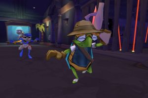 Auch Sly hat vor allem beim Schleichen neue Möglichkeiten: Er kann von hinten an einen Feind herantapsen, um ihn mit einer tödlichen Zweierkombo direkt ins Jenseits zu befördern – herrlich animiert durch eine Attacke samt Judo-Wurf. Außerdem kann er sich jetzt als Langfinger austoben: Sobald er hinter einer arglosen Wache steht, kann er mit seinem Sichelstab zugreifen – neben einfachen Goldmünzen können sich auch wertvolle Gegenstände wie Ringe oder Rubine darin befinden.