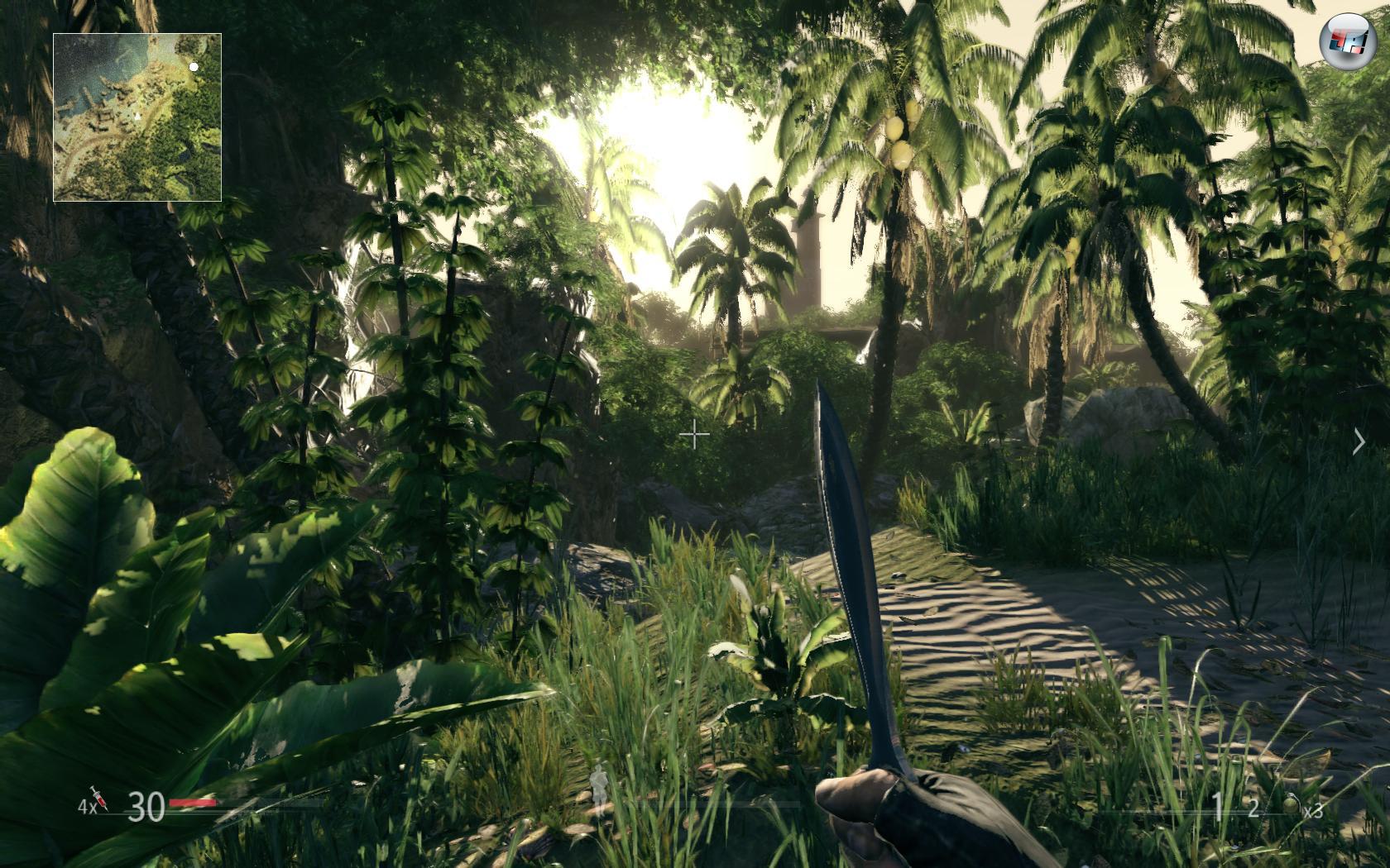 Für herzhaftes Gähnen sorgte dagegen der Online-Modus: Wer Lust hat, mit bis zu elf anderen Campern Verstecken zu spielen, darf sich an drei Modi versuchen. Neben einem Deathmatch und der Team-Variante wartet noch ein „VIP“ genannter Modus. Nur ein Spieler besitzt den Namen gebenden Sonder-Status, welcher mehr Punkte einbringt – allerdings nur so lange, bis er von jemand anderem erwischt wird. Die mittelgroßen, idyllischen Tropen-Karten sehen ähnlich hübsch aus wie die Areale der Kampagne, trotzdem taugt der Multiplayer bestenfalls für ein paar Runden zwischendurch. Der Umfang fällt mit gerade mal sechs Maps mickrig aus. Es gibt in beiden Versionen lediglich vier Standard-Klassen, kaum Optionen und die Bestenliste lässt sich nicht einmal nach Freunden sortieren.