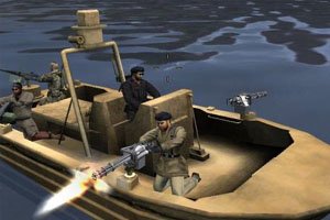 Die riesigen veränderbaren Landschaften sowie die zahllosen Fahrzeuge und Waffen schrauben natürlich die Hardware-Anforderungen in die Höhe. Mit weniger als 512 MB RAM solltet ihr Söldner nicht starten. Trotzdem stehen zwischen euch und der Schlacht recht lange Ladezeiten, aber dafür entschädigen die Ausmaße des Schlachtfeldes sowie die hohe Sichtweite. Den Preis dafür zahlt aber die Grafik-Kulisse, denn das Spiel krankt an hässlichen Waffenmodellen, verwaschenen Texturen, leeren Gebäuden und oftmals eckigen Arealen. Lediglich die Spieler-Modelle sowie die Vehikel überzeugen im Vergleich zu Konkurrenz-Titeln wie Joint Operations oder Battlefield.