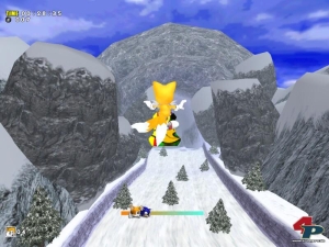 Nicht viel besser sieht es an der Steuerungs-Front aus: Wer die Absicht hegt, Sonic Adventure mit der Tastatur zu spielen, sollte vor dem Start alle Hoffnung auf vernünftiges Zocken fahren lassen. Nur mit einem Gamepad habt ihr den Flitzer einigermaßen unter Kontrolle. Jede Figur hat spezielle Eigenschaften: während Sonic über einen praktischen Homing-Angriff verfügt, kann Tails z.B. dank seines Doppelschwanzes kurzzeitig fliegen. Ihr dürft außerdem vereinzelte Gegenstände mit euch herumtragen, was im Adventure-Teil von Bedeutung ist. Dort lassen sich auch so genannte »Chaos« heranzüchten (nicht zu verwechseln mit dem wässrigen Obergegner): Das sind