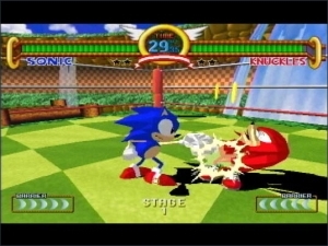 Sonic the Fighters schließlich ist die Rarität im Programm: Bis auf einige wenige Spielhallen bekam dieses Spiel nichts als Japan zu sehen. Allerdings macht der hohe Sammlerwert das Game nicht besser: STF ist nicht viel mehr als eine sehr simple Variante von Virtua Fighter mit Sonic-Figuren. Basierend auf dem AM2-System haut ihr euch hier mit Sonic, Tails, Amy, Fang oder Bean die groben Polygone um die nicht minder groben Nasen. Jede Figur hat gut eine Hand voll Bewegungen, so dass die kurzen Kämpfe immer sehr ähnlich ablaufen. Als Neugierde-Befriedigung ganz gut, aber ein Tekken 5 wird man deswegen wohl nicht aus dem Fenster werfen.