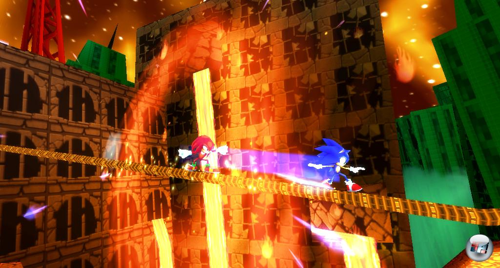 Kommen wir zu den Neuerungen, und damit auch zu den Verschlimmbesserungen: Am Ende jedes Aktes wartet der obligatorische Bossfight, den ihr zusammen mit oder vielmehr gegen euren Konkurrenten angehen müsst. Ihr müsst euch somit nicht nur darauf konzentrieren, den Boss zu treffen, sondern auch dem Gegner auszuweichen und vor allem dafür zu sorgen, dass er nicht als Erster eine bestimmte Trefferzahl landet. Das war zwar im Großen und Ganzen auch beim Vorgänger so, trotzdem haben es die Entwickler geschafft, diese Abschnitte völlig spaßbefreit zu inszenieren – denn die Fights finden nicht mehr nur in runden Arenen, sondern auch in Rennlevels statt. Noch nervender sind allerdings die Klopp-Abschnitte, die sich ebenfalls in jedem Akt finden: In denen gebt ihr eurem Feind mit einfachen Kicks und Sonderwaffen auf die Mütze: Nach einem Treffer verliert er seine Ringe, nach dem zweiten die Runde – drei davon gewonnen bedeutet den Sieg.