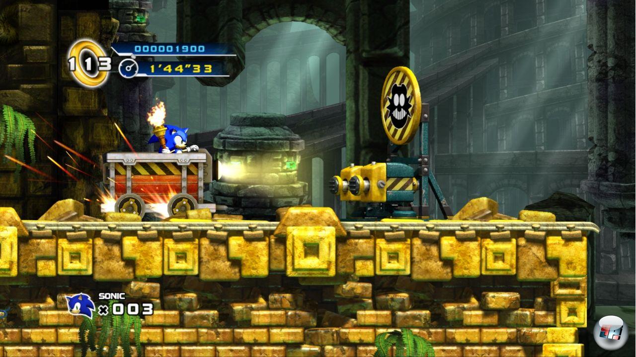 | [GUI_FLVPLAYER(width=300,height=188,STREAMINGID=63048,image=http://static.4players.de/premium/ContentImage/0e/33/162163-bild.jpg)] Video: Die 16 Level orientieren sich an Sonics frühen Abenteuern – und natürlich wartet am Ende jeder Welt Dr. Robotnik auf seine verdiente Abreibung! |