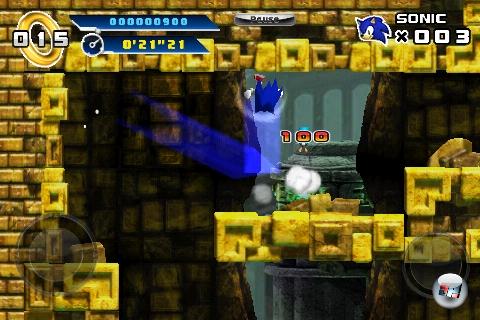 Was predigt Michael Tag und Nacht? »Fisch ist Teufelszeug!« – das stimmt, hat aber mit Sonic gerade nix zu tun. »Virtuelle Pads sind Scheiße!« – da kommen wir der Sache schon näher. Es erfordert in der Tat sehr viel programmiererisches Können, um ein nicht vorhandenes Gamepad auf einer flachen Oberfläche so zu simulieren, dass man den Unterschied kaum merkt. Und deshalb geht es auch oft genug in die Hose. Ein Jauchzen entfleucht mir daher bei Sonic 4: Episode 1 (S4) – denn in die Hose ging’s nicht! Aber perfekt ist es leider auch nicht.