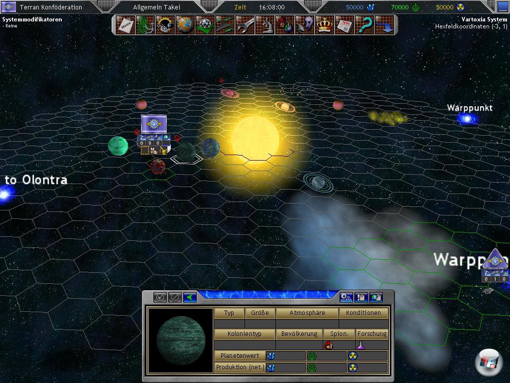 Äußerlich macht Star Empires V leider alles andere als eine gute Figur, denn optisch wirkt das Spiel etwas billig. Schmucklos ist der Ausdruck, den die Menüs verdient haben, die selbst Grafikpuristen zum Weinen bringen. Hinzu kommt, dass der Weltraum eigentlich 2D ist, denn alles spielt sich in einer Ebene ab. Scrollen ist zwar möglich aber ohne große Wirkung, aber immerhin könnt ihr um eure Sonne rotieren. Ohne Zier sind auch die ganzen Anomalien wie Nebel, Gesteinshaufen und Wurmlöcher, durch die ihr in den nächsten Sektor reist. Leider gibt es überhaupt keine Filme, die das langatmige Spiel auflockern könnten. Auch hier wird der Unterschied zu Galactic Civ 2 deutlich, das beinahe jede Aktion mit einem kurzen Video belohnte.