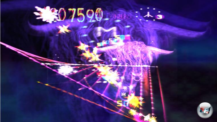 Das Schöne an Space Giraffe ist, das die Levels sich nicht nur vom Aussehen her unterscheiden, sondern auch recht unterschiedliche Spieltaktiken erfordern. Mal müsst ihr möglichst lange auf die widerstandsfähigen Gegner einschießen, um die besonders schnell schrumpfende Power-Zone zu erhalten. Ein anderes mal könnt ihr unheimlich viele gegnerische Schüsse zurück ins Weltall »jonglieren« und eine Menge Punkte abräumen usw. Deutlich getrübt wird der Spielspaß allerdings vom unausgewogenen Schwierigkeitsgrad. Durch manch ein Level bin ich im ersten Anlauf durchmarschiert, für andere habe ich mehr als zwanzig Versuche gebraucht.