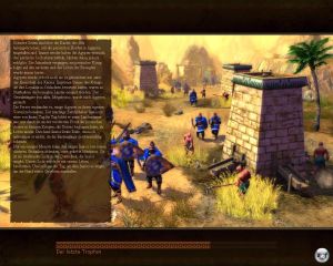 den Status eines soliden Echtzeit-Strategiespiels hinaus. Im Endeffekt ist es wieder das altbekannte Lied vom Hochziehen einer Siedlung, dem Produzieren von Soldaten und dem Warten auf die nächste Schlacht. Obwohl die drei Völker verschiedene Gebäude und Waffen haben, spielen sie sich nicht unterschiedlich genug. Gut, in der Oase der Ägypter hocken vier Sklaven und bei den Spartanern nur zwei Heloten auf dem Hof. Das war’s dann aber auch schon, denn alle fertigen sie Nahrung.
