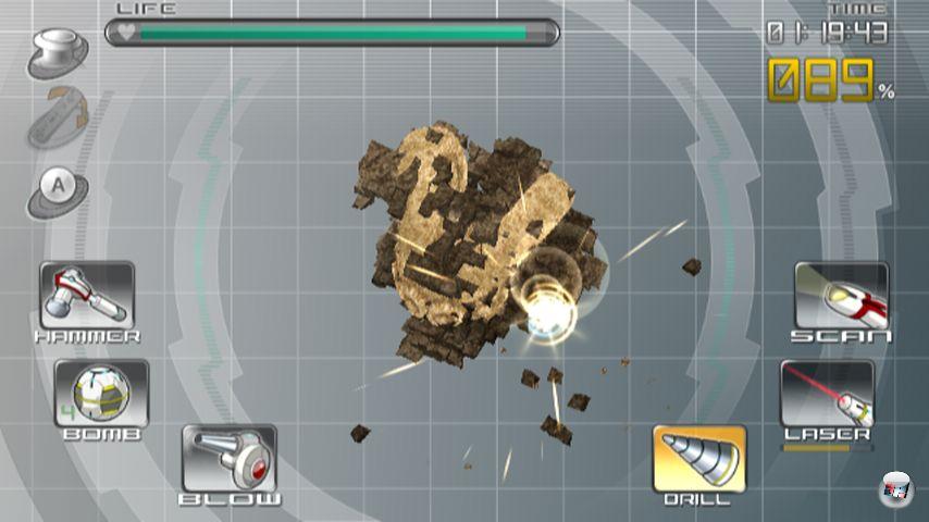 Natürlich dürfen die ausgegrabenen Fossilien wieder höchstpersönlich präpariert werden. Dank intuitiver Remote-Steuerung macht das diesmal besonders viel Spaß. Ich hebe mit einem Scanner die Umrisse der Versteinerung hervor, entferne grobe Brocken mit Werkzeugen wie einem Laser und Sprengsätzen und lege die Feinheiten mit Bohrer und Gebläse frei. Nervig wird es nur, wenn – wer hätte es gedacht –