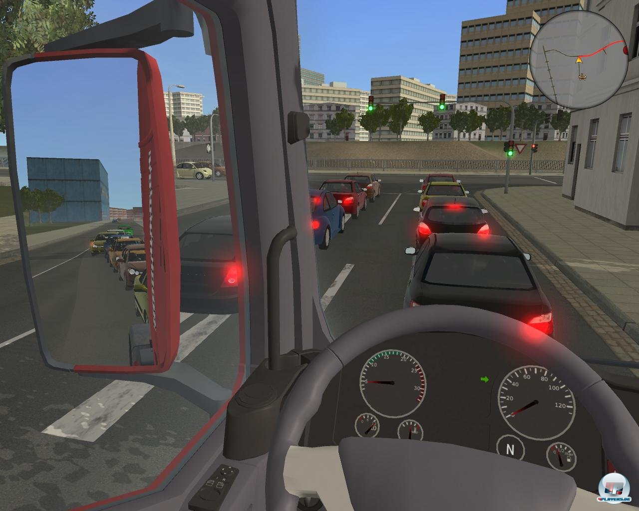 läppischen 1,85 GB Programmcode sind ruck-zuck auf die Festplatte kopiert, Seriennummern gibt es genauso wenig wie Online-Registrierungen und so geht’s dann auch gleich ins Geschehen: Diesmal dreht es sich also um Spezialtransporte. Nun denn. Nachdem ich meine erste Mission starte, sehe ich davon gar nichts: Mit einem normalen Transporter soll ich erstmal von A nach B fahren, um eine Zugmaschine abzuholen. Gesagt, getan. Die Steuerung hebt sich von anderen Spielen dieser „Bauart“ insoweit positiv hervor, indem meine Lenkbewegungen verzögerungsfrei an das Fahrzeug übermittelt werden. Auch optisch kann man gegenüber ähnlichen „Simulationen“ punkten: Hier ist das Lenkrad beispielsweise tatsächlich rund! Sogar der Sound kann sich einigermaßen hören lassen. Das alles gilt allerdings nur im Bezug zu vergleichbaren und daher eben auch schwachen Spielen dieses Genres. Man könnte auch sagen: „Unter den Blinden ist der einäugige König“.