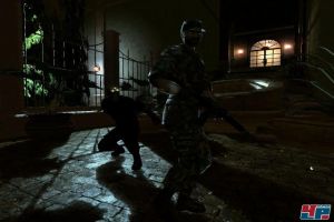 Manchmal hilft aber auch das gekonnte Lauern: Etwas Lärm machen, dann schnell in einen Flur und aufwärts. Die Spagatposition ist kinderleicht umzusetzen: Einfach in einem engen Raum die Shift- Taste drücken, und schon setzt Sam zum eleganten Klettersprung an, der ihn zwischen zwei Wänden in der Höhe verharren lässt. Von dort könnt ihr entweder mit der Waffe feuern oder euch zum Knockout fallen lassen. Und von oben gibt`s ein weiteres akrobatisches Highlight: Wenn ihr wie eine Spinne an Rohren hängt, könnt ihr nicht nur schießen, sondern euren Oberkörper kopfabwärts nach unten fallen lassen, um Opfer entweder auszuknocken oder ihnen nach einem kurzen Ruck das Genick zu brechen.