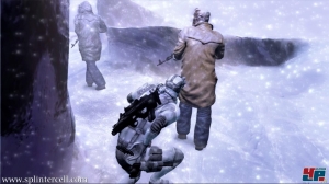 Interessant wurde es für mich erst dort, wo ich mit Sam erstmals bei Tageslicht geschlichen bin. Da es bei Splinter Cell bislang darum ging, wie gut ihr ungesehen von einem Schatten zum nächsten Schatten gelangt, war die Frage: Funktioniert das auch bei Tageslicht? Muss ich auf andere Dinge achten als bei Nacht? Ja und nein. Zum einen seid ihr noch immer meist in finsteren Gängen unterwegs – der Schwerpunkt liegt deshalb weiterhin auf dem Verstecken im Dunkeln. Bei Helligkeit spielen wenige Szenen und nur einer von zehn Aufträgen führt euch komplett ins Licht. In der Eiswüste verhindert z.B. ein Schneesturm die freie Sicht und die restlichen beleuchteten Gebiete fordern kein Umdenken. Sicher: Ihr schleicht den Wachen dort nicht im Schutz der Finsternis direkt vor der Nase entlang, sondern rückt dann vor, wenn sie euch den Rücken zukehren. Das gab es jedoch schon in den vorherigen drei Teilen.