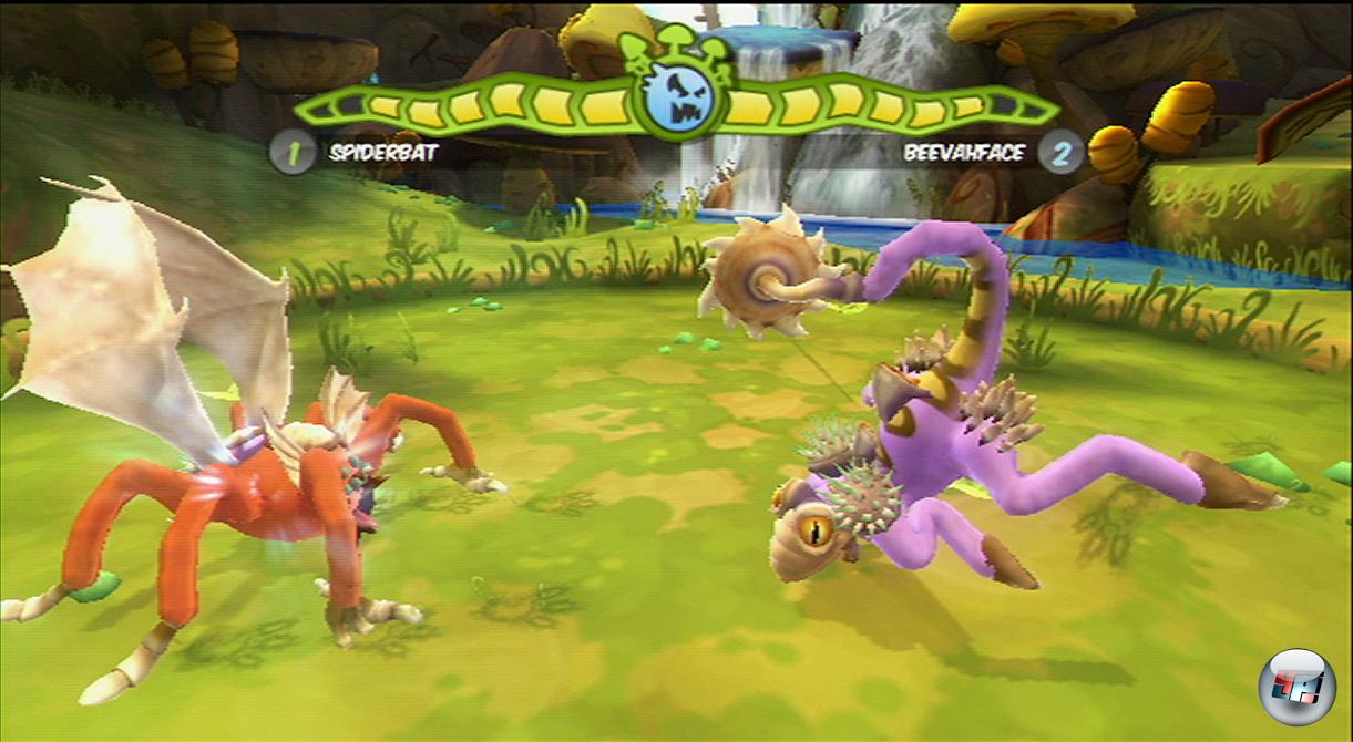 Anders als die Gesangswettbewerbe besitzen die Kampfduelle auch spielerische Qualitäten. Mit Kratos oder einem Virtua Fighter können die Evolutions-Monster natürlich nicht konkurrieren – trotzdem macht es Spaß, Strategien gegen die unterschiedlichen Biester zu entwickeln. Wenn es zur Sache geht, schaltet das Spiel in eine seitliche Perspektive –
