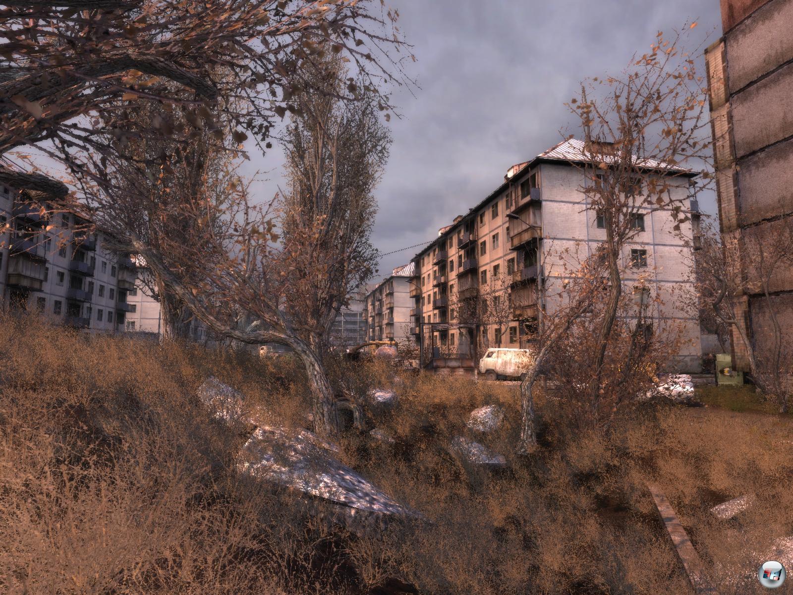 Natürlich ist das kein Crysis <a class="DYNLINK" onmouseover="DynToolTipp_Show('Klicken für Gameinfos‚)“ onmouseout=“DynToolTipp_Hide(); “ href=“javascript:DynCont_Display(‚Gamefinder‘,’runmod.php?sid=%7BSID%7D&LAYOUT=dyncont_gf&spielid=9203′)“>, kein Gears of War. Gerade in Sachen Animationen sieht man nur Durchschnitt, auch so manche Textur deutet auf die lange Entwicklungszeit. Und die Physik ist nur marginal spürbar: Ja, man kann einzelne Latten von Türmen schießen, Kisten zertrümmern. Aber man kann weder Lampen ausschießen noch überall die Holzbarrikaden wegsprengen. Trotzdem: Die Spielwelt wirkt wie aus einem Guss, man erntet überall die Früchte der Recherche, ohne die der Charakter dieser russischen Industrielandschaft nie zum Ausdruck kommen würde: All diese verrotteten Betonsilos, diese riesigen Trümmer, verlassenen Stadtbezirke, mehrstöckige Hochhäuser, marode Eisenbahnlinien, gigantische Müllhalden, mannshohe Rohre, verborgene Tunnel. Selbst feine Holzfaserungen, die Baumrinde oder der bröckelnde Putz werden richtig gut dargestellt.