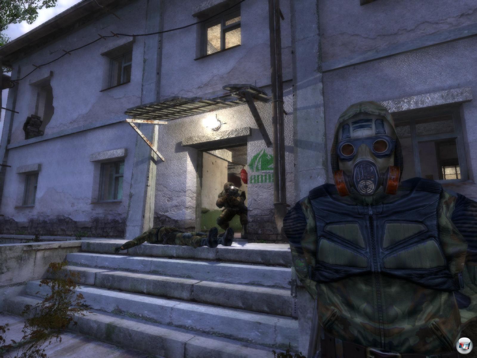 ganz nah ranholen – alles altbekannt. Aber Stalker ist kein einfacher Shooter à la Far Cry <a class="DYNLINK" onmouseover="DynToolTipp_Show('Klicken für Gameinfos‚)“ onmouseout=“DynToolTipp_Hide(); “ href=“javascript:DynCont_Display(‚Gamefinder‘,’runmod.php?sid=%7BSID%7D&LAYOUT=dyncont_gf&spielid=2891′)“> oder Half-Life 2 <a class="DYNLINK" onmouseover="DynToolTipp_Show('Klicken für Gameinfos‚)“ onmouseout=“DynToolTipp_Hide(); “ href=“javascript:DynCont_Display(‚Gamefinder‘,’runmod.php?sid=%7BSID%7D&LAYOUT=dyncont_gf&spielid=7300′)“>, obwohl das Spiel im letzten Drittel bei einem hohen Bodycount fast zu einem Run&Gun-Endspurt ansetzt. Hier scheinen den Entwicklern plötzlich die Ideen ausgegangen zu sein. Man ballert sich alleine oder im Team durch endlose Straßensysteme. Aber bis man diese Shooter-Phase erreicht, herrscht lange Zeit überaus angenehmes Rollenspielflair.