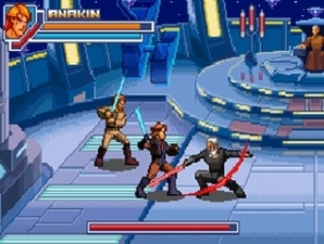 Episode 3 bietet euch drei Schwierigkeitsgrade, wobei anfangs nur zwei anwählbar sind. Die Lernkurve ist sanft ansteigend; anfangs schnetzelt ihr euch sehr gemütlich durch die Gegner, beim großen Finale von Obi-Wan gegen Anakin sollte der DS-Jedi sein Lichtschwert besser perfekt unter Kontrolle haben. Die Steuerung geht leicht von der Hand, bietet aber allerhand Kniffe: So dürft ihr nach vorne und hinten kämpfen, je nachdem welche Richtungstaste ihr beim Angriff drückt, so dass ihr es mit mehreren Gegnern gleichzeitig aufnehmen könnt. Außerdem solltet ihr besser schnell lernen, die Schüsse eurer Feinde zu reflektieren – führt anfangs stures Hämmern auf den Angriffsknopf noch zu Erfolgen, seid ihr mit dieser Taktik später gnadenlos unterlegen. Verteidigung ist in Episode 3 mindestens genauso wichtig wie der Angriff, speziell bei den regelmäßig auftauchenden Endgegnern: Ob Count Dooku, General Grievous oder dicker Panzer, reines Drauflosholzen führt hier nicht mal in die Nähe eines Blumentopfs!