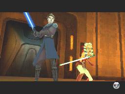 Als George Lucas im Jahr 1977 auf seine Gage für den ersten Star-Wars-Film verzichtete und sich im Gegenzug die Merchandise-Rechte sicherte, war das vermutlich der cleverste Schachzug seines Lebens. Auch heute noch wird die Kuh regelmäßig gemolken: Ein paar Monate nach dem Kinostart des Animationsfilms mit dem Untertitel „The Clone Wars“ dürfen Fans mit einer aktuellen Nintendo-Konsole höchstpersönlich Hand ans Lichtschwert legen – so versprechen es jedenfalls die Verpackungsrückseiten. Anders als im etwas schwammigen Versus-Prügler für Wii kämpft ihr auf dem DS durch komplette Levels. Wir haben für euch den Stylus gezückt und uns durch die mystisch ausgeleuchteten Szenarien gekämpft.