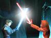 Da er aber nicht so flott kämpft wie ihr, dürft ihr euch in den Kampf einmischen, wenn ihr die übrigen Gegner erledigt habt. Um zu einem Widersacher zu gelangen, tippt ihr ihn einfach an und bereits eine Sekunde später ist euer Jedi zum Ziel gehüpft. Dann folgt Phase 1 des Dauergehämmers: Im Grunde reicht es, wie ein Berserker über den DS herzufallen und auf den Gegner einzuprügeln. Ab und zu solltet ihr allerdings die Schlaghöhe variieiren, damit euer Gegenüber nicht eure, sondern ihr seine Deckung durchbrecht.