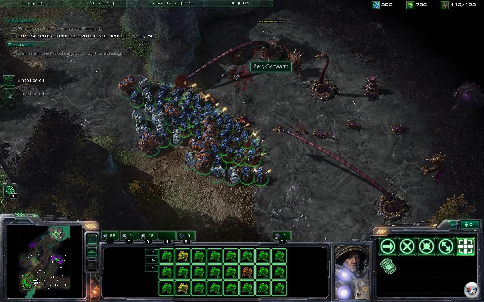 Doch jetzt reicht es mit dem Umfeld. Wie sieht es mit dem Kern, den Echtzeit-Schlachten aus? Kritische Stimmen könnten behaupten, StarCraft II wäre nicht mehr als ein aufpolierter Aufguss von StarCraft und im Zusammenhang mit den Kämpfen ist dies oberflächlich betrachtet