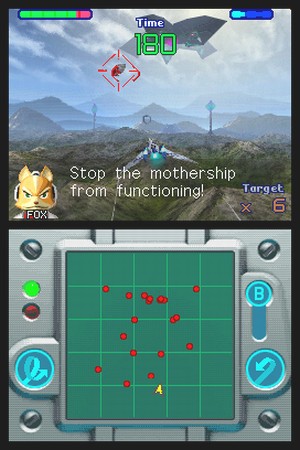 Anfangs steuert ihr ausschließlich Star Fox, doch schon nach kurzer Zeit gesellen sich alte Haudegen wie Slippy an eure Seite. Jeder dieser Zugänge hat unterschiedliche Schiffe und Eigenschaften: Der eine kann Gegner gezielt anvisieren, der nächste darf mehr Bomben mit sich tragen. So oberflächlich diese Unterschiede klingen mögen, so wichtig sind sie spätestens dann, wenn ihr vier eigene Schiffe, die wackelige »Great Fox« und jede Menge Gegner auf dem kleinen Screen unter eine sinnvolle Haube bringen müsst – Taktiker einen Schritt vor! Diese Abschnitte sind somit auch die eigentliche Herausforderung von Starfox Command, denn die Kämpfe sind aufgrund der gegnerischen KI, die sich etwa auf dem Level von klebriger Hefe bewegt, keine Herausforderung für geübte Laserfinger. Sogar so viel Herausforderung, dass sich schnell Frust breit macht, wenn man eine Mission wieder und wieder verliert, weil aus einem trüben Nebelfeld eine Rakete nach der anderen das Mutterschiff zerbröselt – der Schwierigkeitsgrad steigt schnell und steil nach oben, es gibt keine wählbaren Stufen.