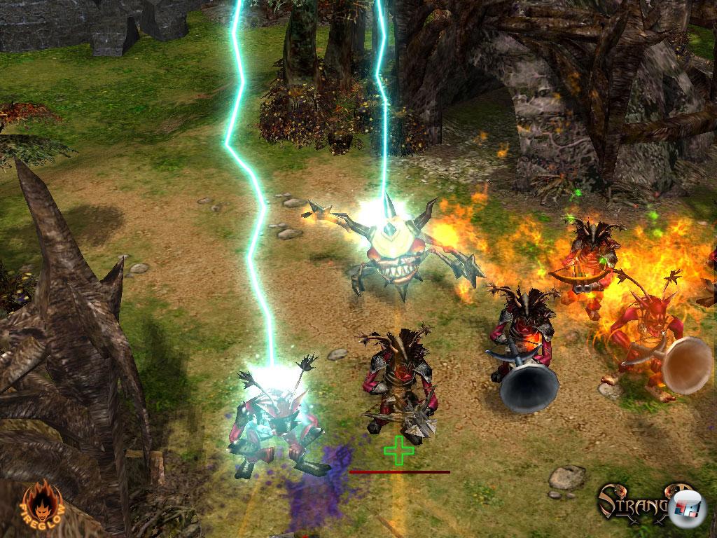 Dafür, dass sich die Entwickler von Sudden Strike in der Echtzeitstrategie auskennen, lassen sie allerdings viele Möglichkeiten beim Taktieren missen. U.a. marschiert der Trupp nicht in der gewählten Aufstellung, sondern nimmt diese erst beim Erreichen des Ziels ein. Wobei Stranger abgesehen vom nützlichen „Nahkämpfer vorn, Bogenschützen hinten“ ohnehin keine Finessen bietet und sich die eigenen Krieger beim Marschieren in die Quere kommen. Will man einen Verletzten abziehen, kann es deshalb passieren, dass er vor seinen eigenen Reihen von den lebensrettenden zwei Schritten ins Hinterland abgehalten wird. Immerhin kann man die Blickrichtung der Aufstellung selbst festlegen.