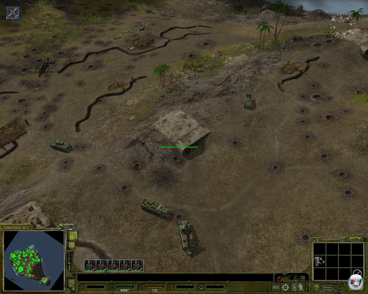 Immerhin kämpfen die eigenen Soldaten dieses Mal ganz von alleine, schießen aber nicht immer auf das wichtigste Ziel. So bekämpft einfache Infanterie nicht ihr feindliches Gegenstück, sondern schießt lieber auf Panzer, in die sie ohnehin keine Kratzer macht. Hier müsst ihr das Feuer der Einheiten leiten, indem ihr auf den Feind klickt. Leider zielen sie mit den allgegenwärtigen Panzerfäusten nicht viel besser, denn die verschießen sie sinnlos auf die lange Distanz. Übermächtig einmal mehr sind sie mit Handgranaten, die Bunker und Gräben leer räumen, als wäre das nichts.