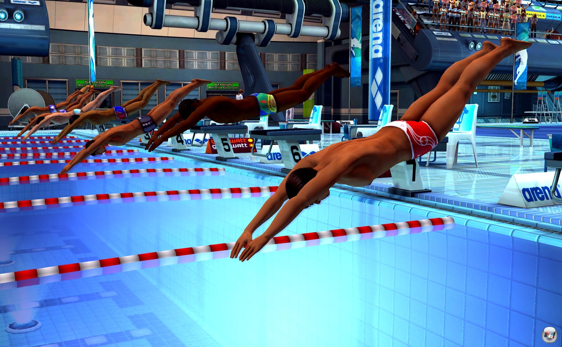 Es liegt auch nicht daran, dass sich 49Games sichtlich Mühe gegeben hat, damit ihre Sportler, ihr Publikum und ihr Stadium lebendiger wirken. Es gibt zwar nur ein Stadion sowie eine Schwimmhalle; die Kulissen sehen allerdings angenehm modern, sogar eine Idee futuristisch aus. Und die natürlich noch immer vorhandenen Klon-Zuschauer strömen auch diesmal nur in geringer Anzahl ins Stadium – jubeln und feuern aber alle in ihrem individuellen Rhythmus an. An den sommerathletischen Profis liegt es ebenfalls nicht, denn die erscheinen inzwischen nicht nur zur Siegerehrung, sondern haben auch fürs Jubeln, Ärgern und Mäßig-Zufrieden-Sein neue Animationen erlernt. Nicht zuletzt haben die Entwickler auch den Charaktereditor erweitert, so dass ich zum ersten Mal Details wie Kinnbreite oder Nasenlänge frei bestimmen konnte. Kleiner Dämpfer allerdings: Am Ende sieht man den meisten Figuren dennoch an, dass sie Kinder derselben Eltern sind. Und ich darf mein Alter Ego nicht außerhalb der Karriere verwenden – schade!
