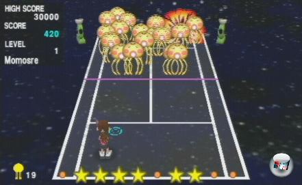 Immerhin dürft ihr dafür mit nur einem Modul einen Mitspieler einladen oder ihm eine Demo der fünf Minispiele über den Äther zuschieben. Anders als in Virtua Tennis wird die kurzweilige Abwechslung natürlich nicht in die nicht vorhandene Karriere eingebunden und fördert auch nicht die Entwicklung von Schlagstärke, Geschwindigkeit oder Präzision. Stattdessen vertreibt ihr euch beim Zielschießen, „Space Invaders“ oder dem Zurückhalten (Anschießen) einer Wand die Zeit. Dafür gibt’s Punkte – das war’s. Genau wie das Fadenkreuz könnt ihr auch den automatischen Wechsel der Perspektive nicht abschalten,