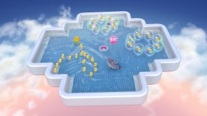 Man nehme: Eine gut gefüllte Badewanne. Einige Dutzend Labyrinthe. Aufziehbare Haie. Und jede Menge kleiner putziger Entchen, die in einer Seifenblase darauf warten, von einem etwas größeren Herumquaker eingesammelt zu werden. Fertig ist Super Rub-a-Dub, eine Mischung aus Lemmings, Super Monkey Ball und dem Klassiker Flicky. Wie in dem Affen-Abenteuer bewegt man den Protagonisten nicht direkt, sondern kippt mit dem Controller den Levels, woraufhin die Physik ihre Arbeit aufnimmt, das Wasser herumschwappt, und die Schwierigkeiten beginnen: Denn in Super Rub-a-Dub ist im Gegensatz zu Lemmings nicht entscheidend, wie viele Entlein ihr rettet, sondern wie schnell ihr das macht. Und wie gründlich, denn je mehr Quakfreunde ihr auf einmal in den rettenden Ausguss bugsiert (eine »Duck Chain«), desto mehr