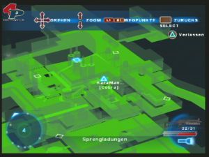 Eine 3D-Karte mit durchschaltbaren Missionszielpunkten gibt es übrigens auch, aber diese ist mangels Scroll-Funktion und ineinander verschwimmender Grün-in-Grün-Töne wenig aufschlussreich und lässt beim Aufrufen das Spielgeschehen einfach weiterlaufen, was oft fatale Folgen haben kann. Daher benutzt ihr sie meist nur zum Setzen von Wegpunkten und orientiert euch dann lieber anhand eures stets aktiven Radarschirms, der auch sämtliche in der Nähe befindliche Freund- und Feindpositionen ausspuckt.