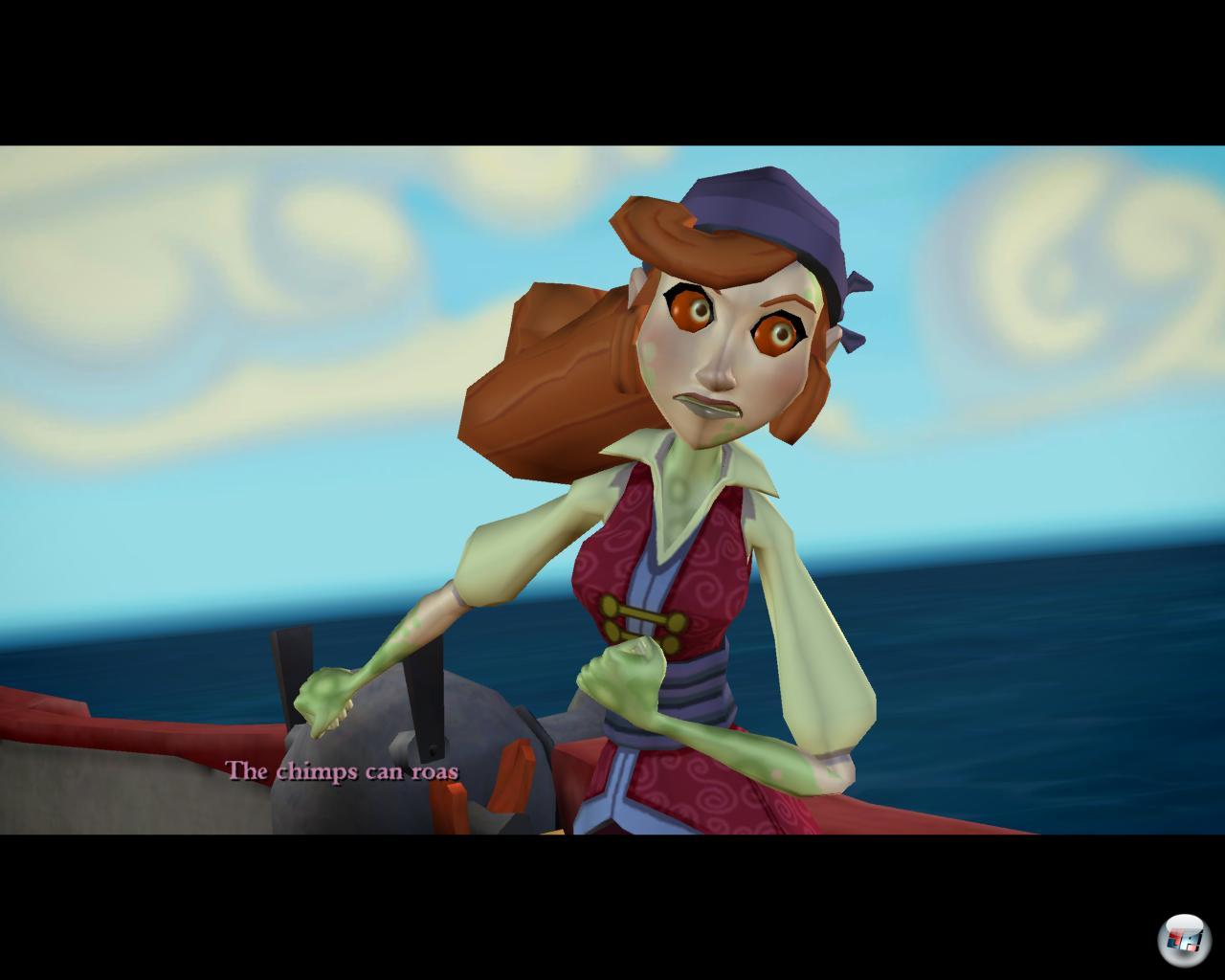 Immer wieder begeisternd ist die Art und Wies, wie pointiert die Charaktere herausgearbeitet wurden. Da gibt es den Surfer unter den Piraten, der ebenso dümmlich wie feierwillig rüber kommt, dann den Typ mit den Bongotrommeln, der noch nie ne Freundin hatte, und schließlich den obermisstrauischen Chef der Gang, der nicht mal sich selbst über den Weg traut. Jeder von ihnen will richtig angefasst werden, weshalb man jedem einen Wunsch von den Lippen ablesen muss. Wenn z.B. Guybrush versucht, Morgan davon zu überzeugen, den hässlichen Typ zu daten, ist ein Spaß für sich. Als das nicht fruchtet, greift er zum militärischen Ton, denn was anderes versteht die zum Stalkertum neigende Kopfgeldjägerin ohnehin nicht…