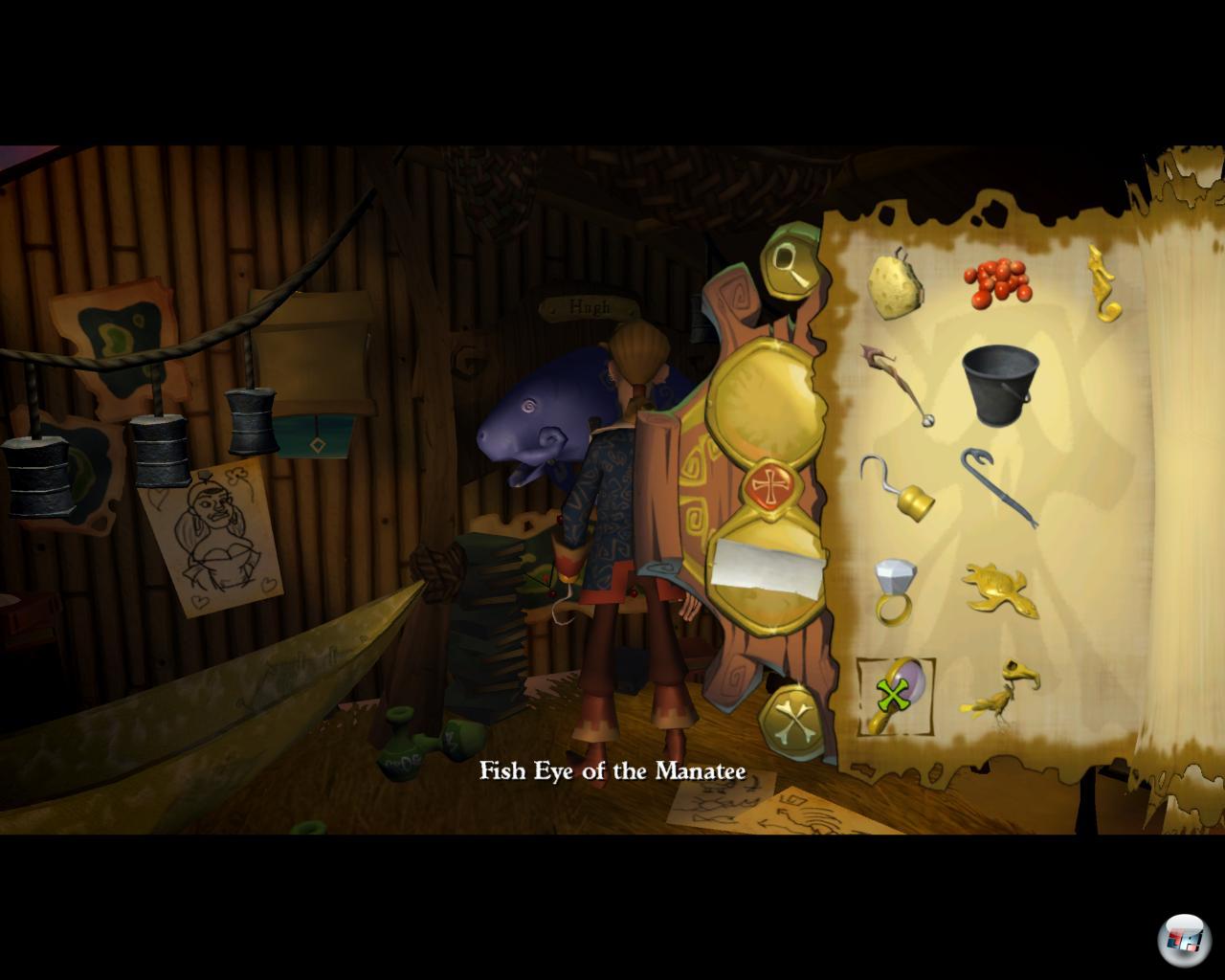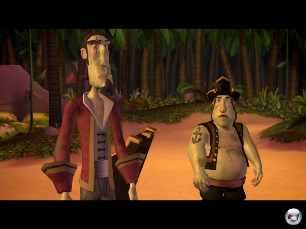 Wieso ich das überhaupt frage? Auch der Held von Tales of Monkey Island ist sozusagen Spezialist für südliche Inseln. Wie schon der Titel verrät, sind diese Eilande eher mysteriös als einsam, denn meist lastet ein rätselhafter Fluch auf ihnen. Dass Guybrush auch ein Herz für einsame Gestade hat, stellt er jetzt im zweiten Teil unter Beweis. Nachdem er anfängliche Schwierigkeiten in Form eines weiblichen Piratenjägers abgehängt hat, macht er auf einer Insel fest, die wirklich zu winzig ist, um noch idyllisch zu sein. Aber der Gute kann sich sogar vorstellen, dort ein Ferienhaus mit Elaine zu bauen. Nur einer von vielen witzigen Sprüchen, die der coole Antiheld wieder im Lauf des Abenteuers von sich gibt.