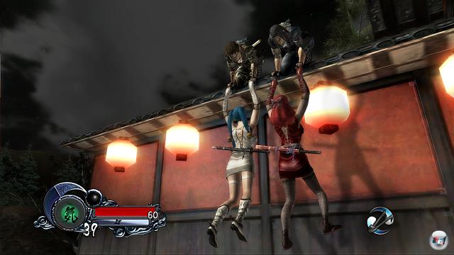 Den entfaltet es auch für zwischendurch über Xbox Live, denn ihr könnt kooperativ mit bis zu vier Mann Aufträge erledigen – auch ein System Link ist möglich. In einer Lobby könnt ihr euch über Headset verabreden; auch in den Missionen ist die Kommunikation möglich, wer es ganz authentisch haben will, kann auch Handzeichen geben: Gehen, Halt, Ja und Nein stehen zur Verfügung. Sobald man sich mit menschlichen Gegnern unter Ranglistenbedingungen misst, entfaltet Tenchu natürlich einen ganz eigenen Reiz.